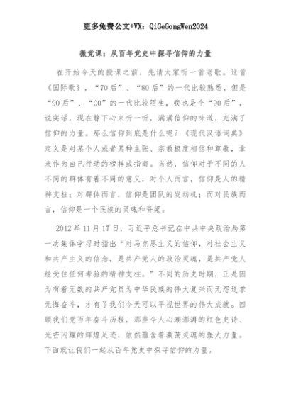 【七哥公文】2025年:微党课:从百年党史中探寻信仰的力量+更多免费公文+VX:QiGeGongWen2024+更多免费公文+VX:QiGeGongWen2024