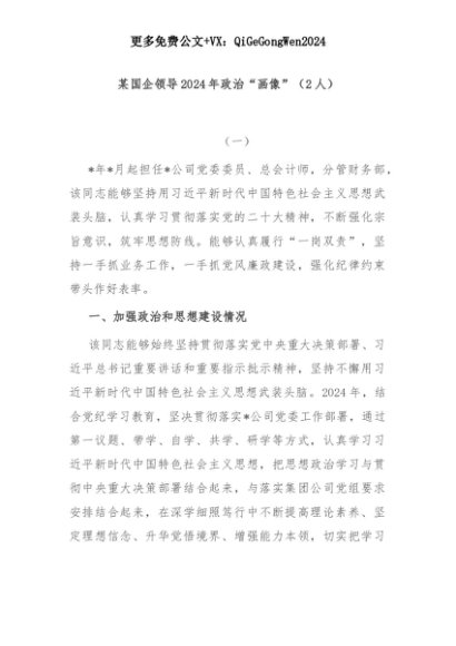 【七哥公文】2025年:某国企领导2024年政治“画像”(2人)+更多免费公文+VX:QiGeGongWen2024+更多免费公文+VX:QiGeGongWen2024