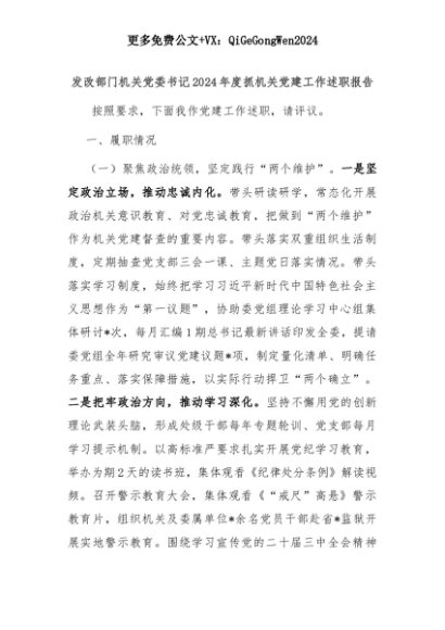 【七哥公文】2025年:发改部门机关党委书记2024年度抓机关党建工作述职报告+更多免费公文+VX:QiGeGongWen2024+更多免费公文+VX:QiGeGongWen2024