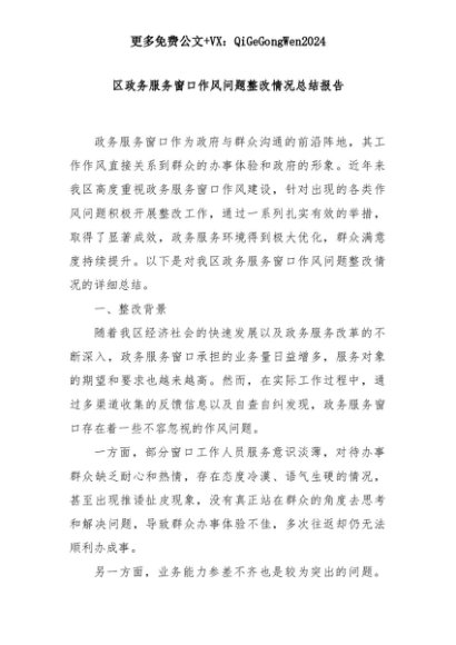 【七哥公文】2025年:区政务服务窗口作风问题整改情况总结报告+更多免费公文+VX:QiGeGongWen2024+更多免费公文+VX:QiGeGongWen2024