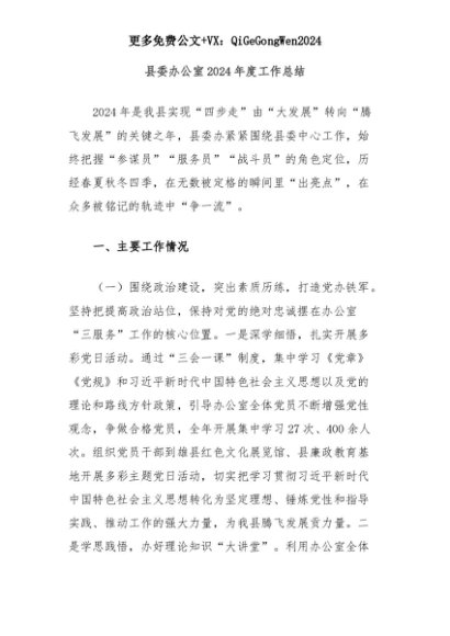 【七哥公文】2025年:县委办公室2024年度工作总结+更多免费公文+VX:QiGeGongWen2024+更多免费公文+VX:QiGeGongWen2024