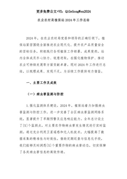 【七哥公文】2025年:农业农村局植保站2024年工作总结+更多免费公文+VX:QiGeGongWen2024+更多免费公文+VX:QiGeGongWen2024