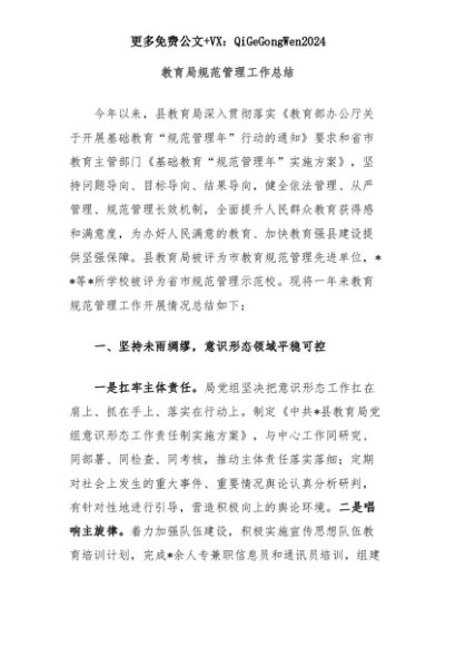 【七哥公文】2025年:教育局规范管理工作总结+更多免费公文+VX:QiGeGongWen2024+更多免费公文+VX:QiGeGongWen2024