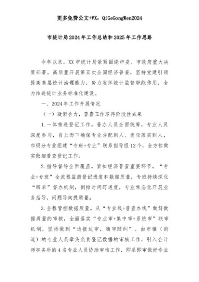 【七哥公文】2025年:市统计局2024年工作总结和2025年工作思路+更多免费公文+VX:QiGeGongWen2024+更多免费公文+VX:QiGeGongWen2024