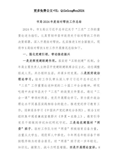 【七哥公文】2025年:市局2024年度结对帮扶工作总结+更多免费公文+VX:QiGeGongWen2024+更多免费公文+VX:QiGeGongWen2024