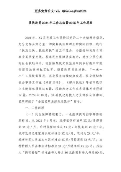 【七哥公文】2025年:县民政局2024年工作总结暨2025年工作思路+更多免费公文+VX:QiGeGongWen2024+更多免费公文+VX:QiGeGongWen2024