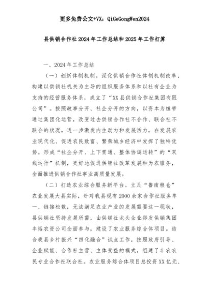 【七哥公文】2025年:县供销合作社2024年工作总结和2025年工作打算+更多免费公文+VX:QiGeGongWen2024+更多免费公文+VX:QiGeGongWen2024