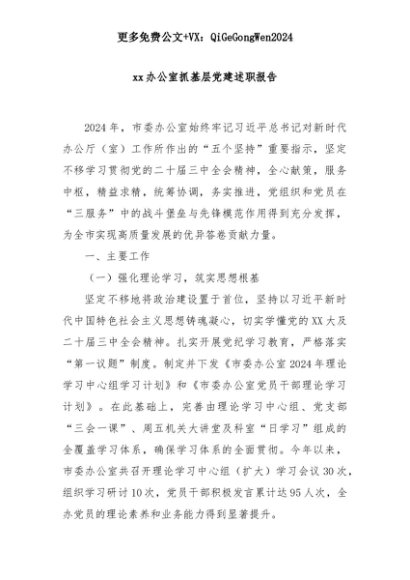 【七哥公文】2025年:xx办公室抓基层党建述职报告+更多免费公文+VX:QiGeGongWen2024+更多免费公文+VX:QiGeGongWen2024