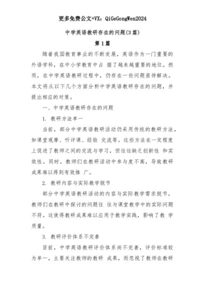 【七哥公文】2025年:(3篇)中学英语教研存在的问题+更多免费公文+VX:QiGeGongWen2024+更多免费公文+VX:QiGeGongWen2024
