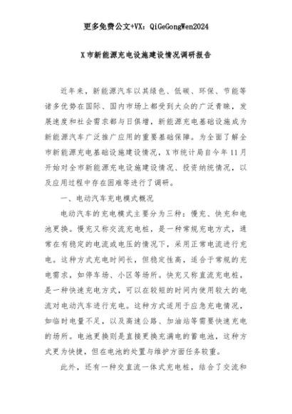 【七哥公文】2025年:X市新能源充电设施建设情况调研报告+更多免费公文+VX:QiGeGongWen2024+更多免费公文+VX:QiGeGongWen2024