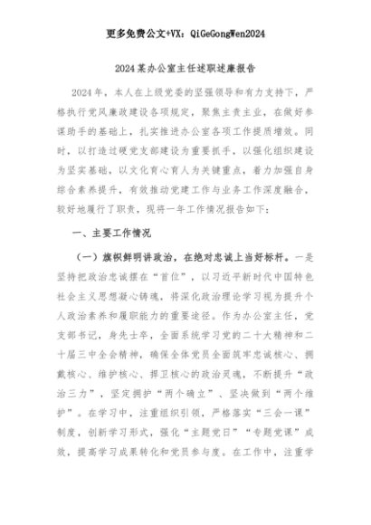 【七哥公文】2025年:2024某办公室主任述职述廉报告+更多免费公文+VX:QiGeGongWen2024+更多免费公文+VX:QiGeGongWen2024