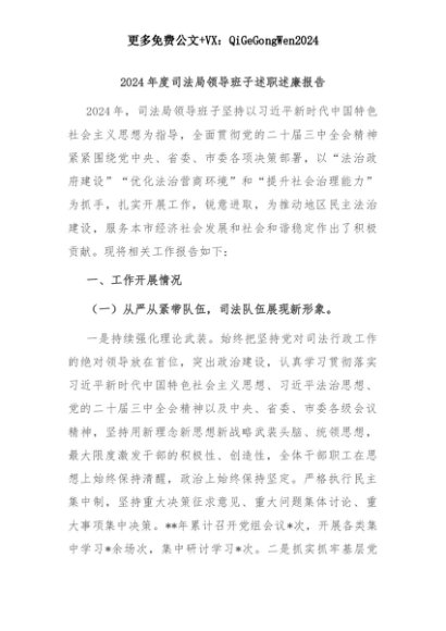 【七哥公文】2025年:2024年度司法局领导班子述职述廉报告+更多免费公文+VX:QiGeGongWen2024+更多免费公文+VX:QiGeGongWen2024
