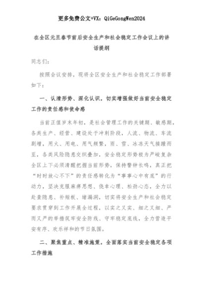 【七哥公文】2025年:在全区元旦春节前后安全生产和社会稳定工作会议上的讲话提纲+更多免费公文+VX:QiGeGongWen2024+更多免费公文+VX:QiGeGongWen2024