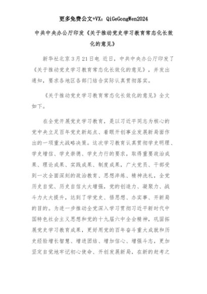 【七哥公文】2025年:中共中央办公厅印发《关于推动党史学习教育常态化长效化的意见》+更多免费公文+VX:QiGeGongWen2024+更多免费公文+VX:QiGeGongWen2024