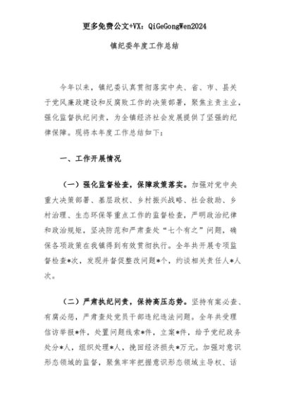 【七哥公文】2025年:镇纪委年度工作总结+更多免费公文+VX:QiGeGongWen2024+更多免费公文+VX:QiGeGongWen2024
