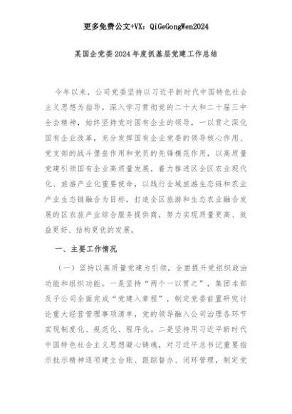 【七哥公文】2025年:某国企党委2024年度抓基层党建工作总结+更多免费公文+VX:QiGeGongWen2024+更多免费公文+VX:QiGeGongWen2024