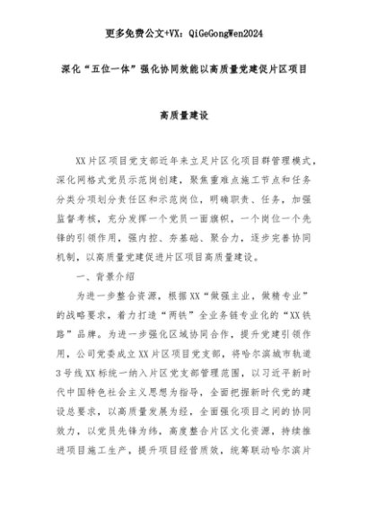 【七哥公文】2025年:深化“五位一体”强化协同效能以高质量党建促片区项目高质量建设+更多免费公文+VX:QiGeGongWen2024+更多免费公文+VX:QiGeGongWen2024