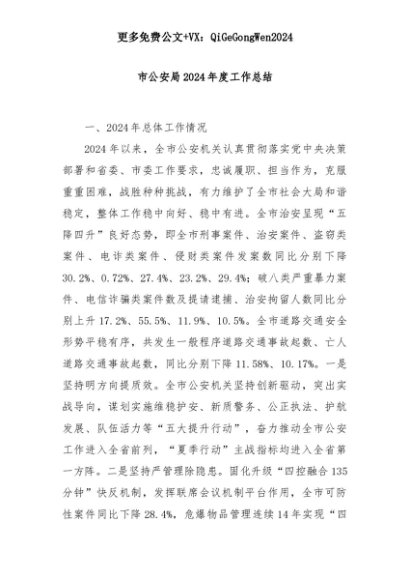【七哥公文】2025年:市公安局2024年度工作总结+更多免费公文+VX:QiGeGongWen2024+更多免费公文+VX:QiGeGongWen2024