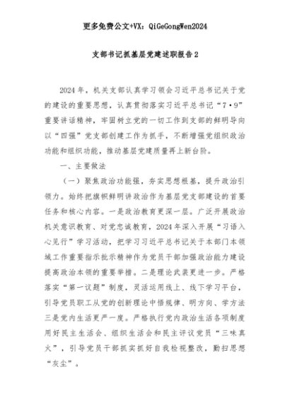 【七哥公文】2025年:支部书记抓基层党建述职报告2+更多免费公文+VX:QiGeGongWen2024+更多免费公文+VX:QiGeGongWen2024