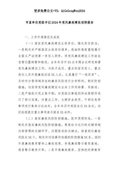 【七哥公文】2025年:市直单位党组书记2024年党风廉政建设述职报告+更多免费公文+VX:QiGeGongWen2024+更多免费公文+VX:QiGeGongWen2024