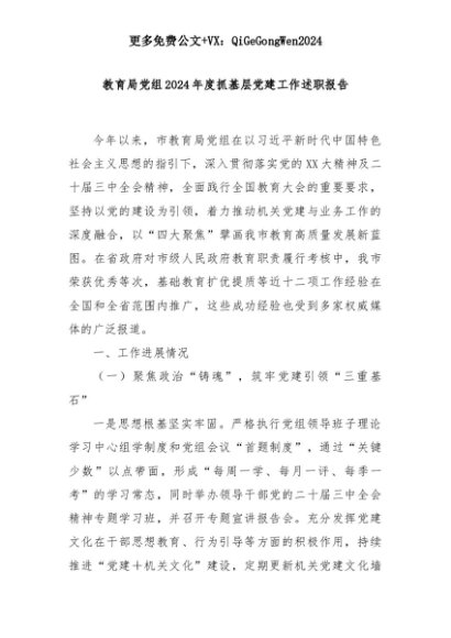 【七哥公文】2025年:教育局党组2024年度抓基层党建工作述职报告+更多免费公文+VX:QiGeGongWen2024+更多免费公文+VX:QiGeGongWen2024
