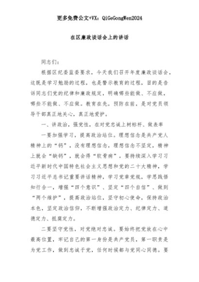 【七哥公文】2025年:在区廉政谈话会上的讲话+更多免费公文+VX:QiGeGongWen2024+更多免费公文+VX:QiGeGongWen2024