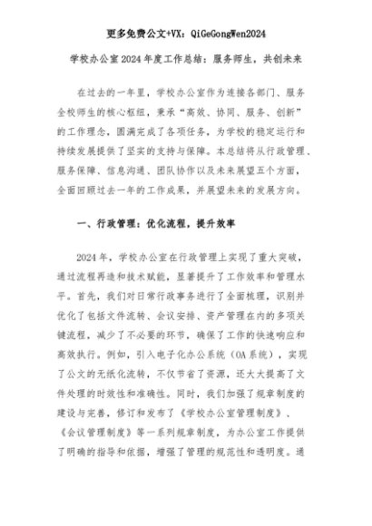 【七哥公文】2025年:学校办公室2024年度工作总结:服务师生,共创未来+更多免费公文+VX:QiGeGongWen2024+更多免费公文+VX:QiGeGongWen2024