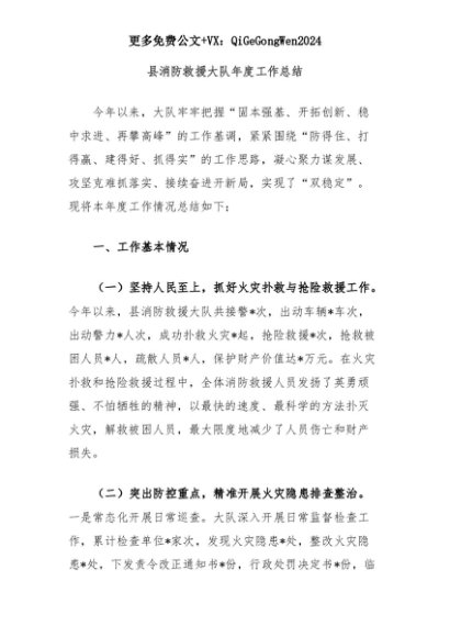 【七哥公文】2025年:县消防救援大队年度工作总结+更多免费公文+VX:QiGeGongWen2024+更多免费公文+VX:QiGeGongWen2024