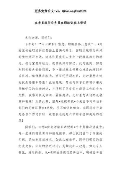 【七哥公文】2025年:在市直机关公务员在职培训班上讲话+更多免费公文+VX:QiGeGongWen2024+更多免费公文+VX:QiGeGongWen2024