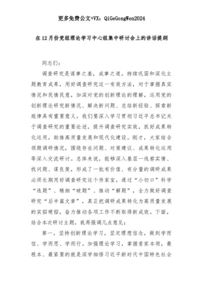【七哥公文】2025年:在12月份党组理论学习中心组集中研讨会上的讲话提纲+更多免费公文+VX:QiGeGongWen2024+更多免费公文+VX:QiGeGongWen2024