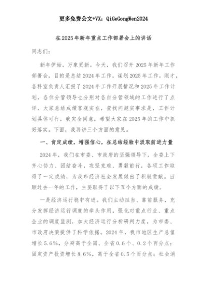 【七哥公文】2025年:在2025年新年重点工作部署会上的讲话+更多免费公文+VX:QiGeGongWen2024+更多免费公文+VX:QiGeGongWen2024