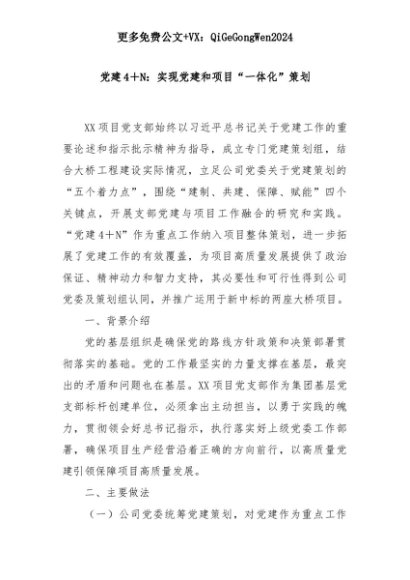 【七哥公文】2025年:党建4+N:实现党建和项目“一体化”策划+更多免费公文+VX:QiGeGongWen2024+更多免费公文+VX:QiGeGongWen2024