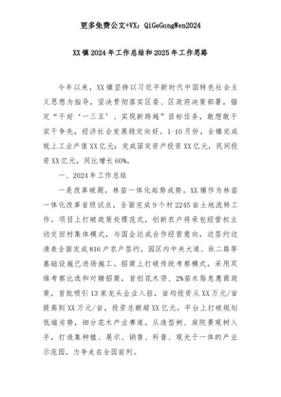 【七哥公文】2025年:XX镇2024年工作总结和2025年工作思路+更多免费公文+VX:QiGeGongWen2024+更多免费公文+VX:QiGeGongWen2024