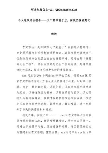 【七哥公文】2025年:个人述职评价报告——天下莫柔弱于水,而攻坚强者莫之能胜+更多免费公文+VX:QiGeGongWen2024+更多免费公文+VX:QiGeGongWen2024