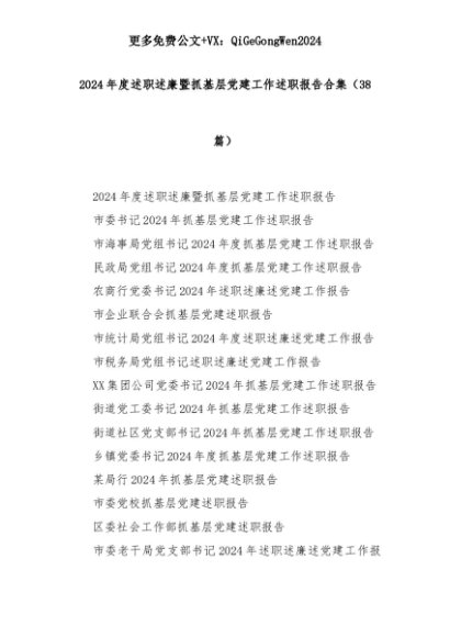 【七哥公文】2025年:(38篇)2024年度述职述廉暨抓基层党建工作述职报告合集+更多免费公文+VX:QiGeGongWen2024+更多免费公文+VX:QiGeGongWen2024