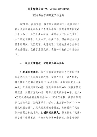 【七哥公文】2025年:2024年村干部年度工作总结+更多免费公文+VX:QiGeGongWen2024+更多免费公文+VX:QiGeGongWen2024