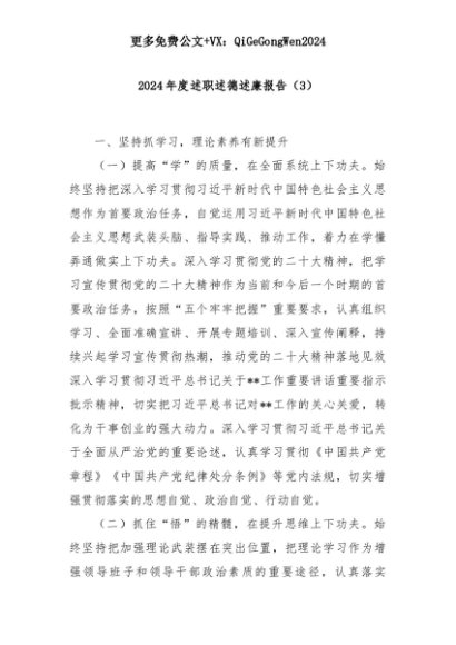 【七哥公文】2025年:2024年度述职述德述廉报告(3)+更多免费公文+VX:QiGeGongWen2024+更多免费公文+VX:QiGeGongWen2024