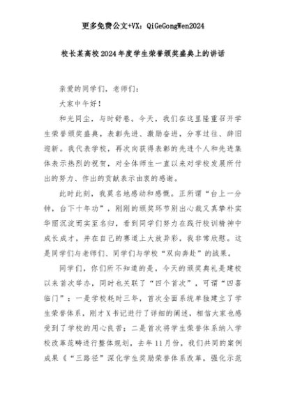 【七哥公文】2025年:校长某高校2024年度学生荣誉颁奖盛典上的讲话+更多免费公文+VX:QiGeGongWen2024+更多免费公文+VX:QiGeGongWen2024