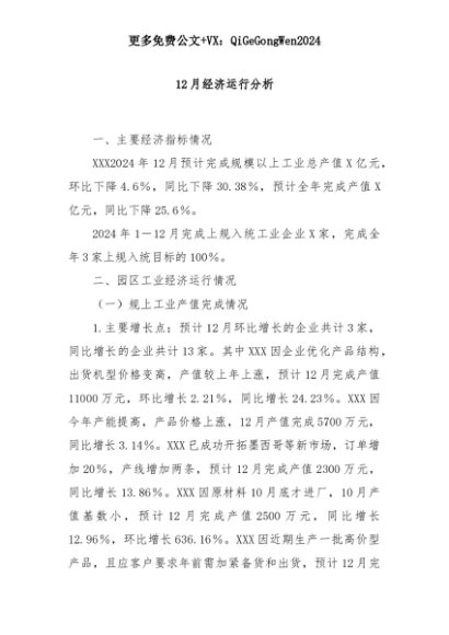 【七哥公文】2025年:12月经济运行分析+更多免费公文+VX:QiGeGongWen2024+更多免费公文+VX:QiGeGongWen2024