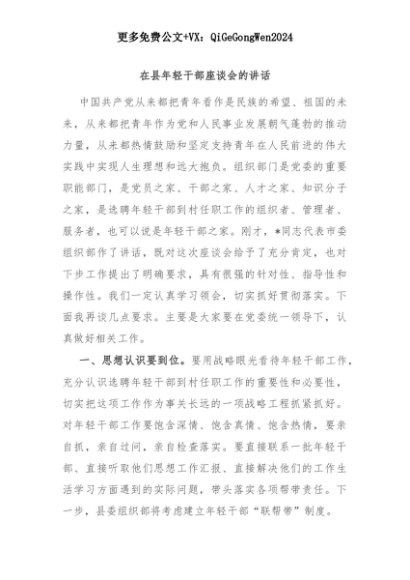 【七哥公文】2025年:在县年轻干部座谈会的讲话+更多免费公文+VX:QiGeGongWen2024+更多免费公文+VX:QiGeGongWen2024
