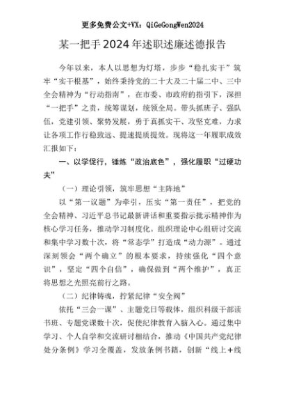 【七哥公文】2025年:某一把手2024年述职述廉述德报告+更多免费公文+VX:QiGeGongWen2024+更多免费公文+VX:QiGeGongWen2024