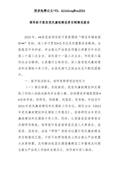【七哥公文】2025年:领导班子落实党风廉政建设责任制情况报告+更多免费公文+VX:QiGeGongWen2024+更多免费公文+VX:QiGeGongWen2024