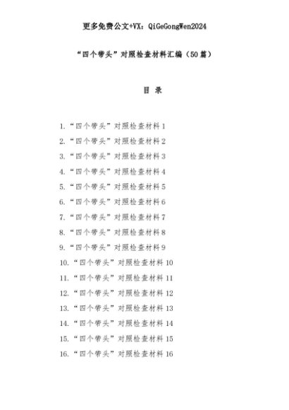 【七哥公文】2025年:(50篇)“四个带头”对照检查材料汇编+更多免费公文+VX:QiGeGongWen2024+更多免费公文+VX:QiGeGongWen2024
