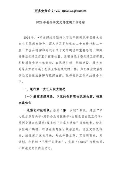 【七哥公文】2025年:2024年县分局党支部党建工作总结+更多免费公文+VX:QiGeGongWen2024+更多免费公文+VX:QiGeGongWen2024