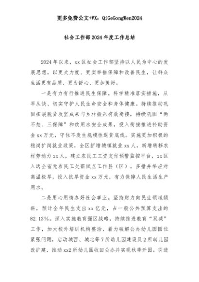 【七哥公文】2025年:社会工作部2024年度工作总结+更多免费公文+VX:QiGeGongWen2024+更多免费公文+VX:QiGeGongWen2024