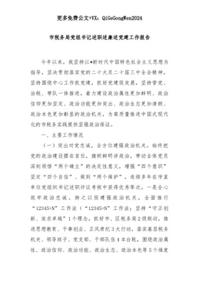 【七哥公文】2025年:市税务局党组书记述职述廉述党建工作报告+更多免费公文+VX:QiGeGongWen2024+更多免费公文+VX:QiGeGongWen2024