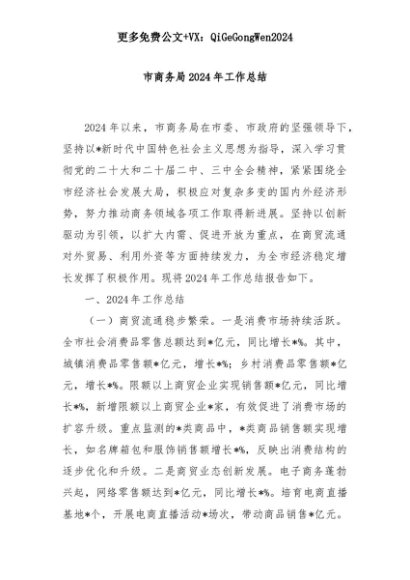 【七哥公文】2025年:市商务局2024年工作总结+更多免费公文+VX:QiGeGongWen2024+更多免费公文+VX:QiGeGongWen2024