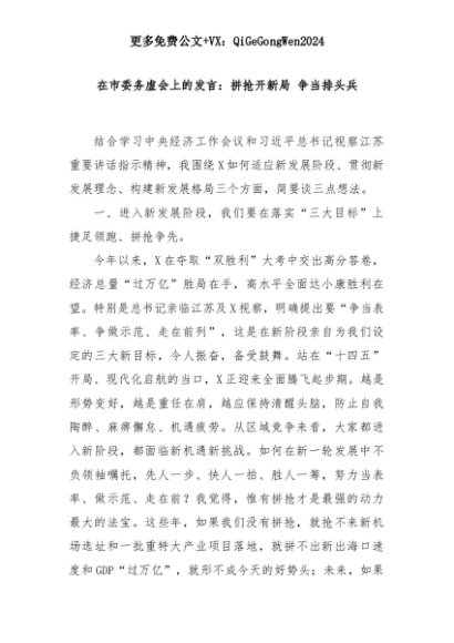 【七哥公文】2025年:在市委务虚会上的发言:拼抢开新局 争当排头兵+更多免费公文+VX:QiGeGongWen2024+更多免费公文+VX:QiGeGongWen2024