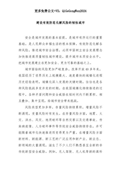 【七哥公文】2025年:建设有效防范化解风险的韧性城市+更多免费公文+VX:QiGeGongWen2024+更多免费公文+VX:QiGeGongWen2024