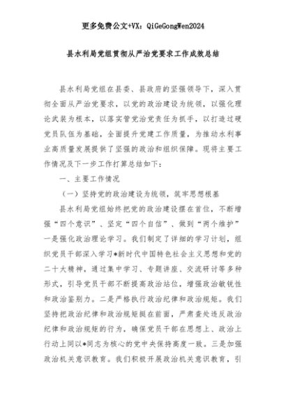 【七哥公文】2025年:县水利局党组贯彻从严治党要求工作成效总结+更多免费公文+VX:QiGeGongWen2024+更多免费公文+VX:QiGeGongWen2024